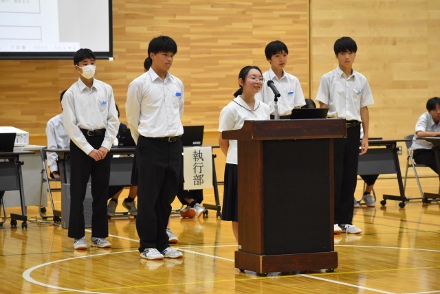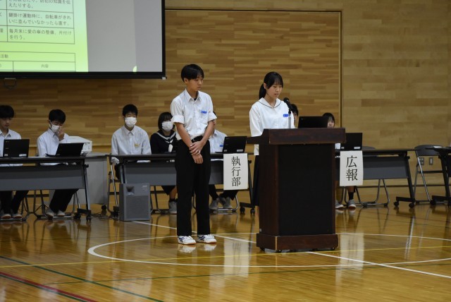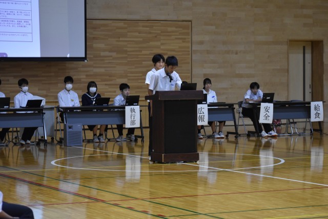 本日の1・2限に、生徒総会を行いました。後期生徒会執行部および専門委員会の活動計画案について、全校生徒が積極的に意見を伝え合う時間になりました。