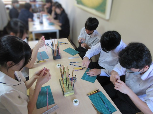 午後からの展示見学では、各学年や部活動等の作品を鑑賞、体験しました。