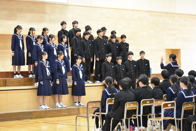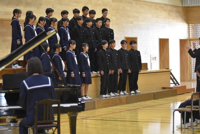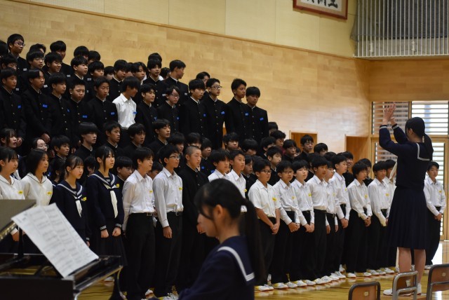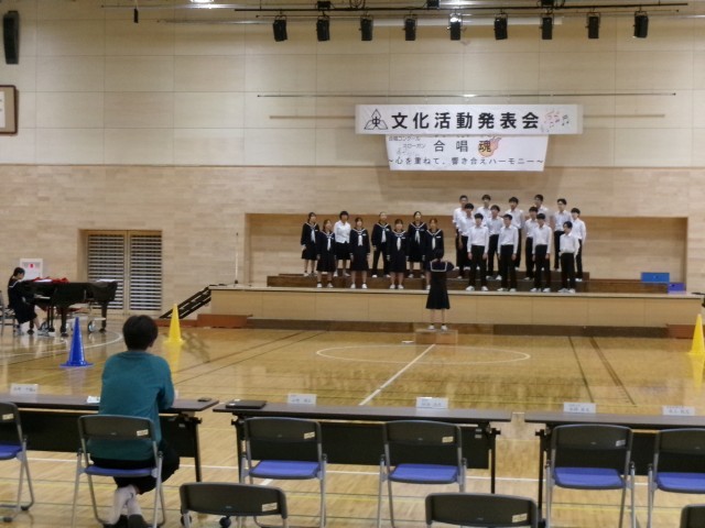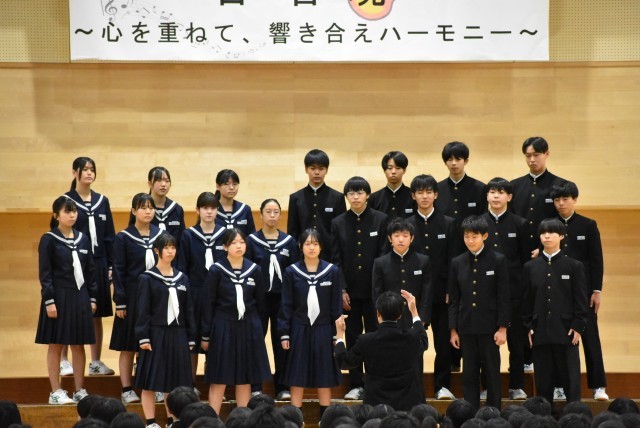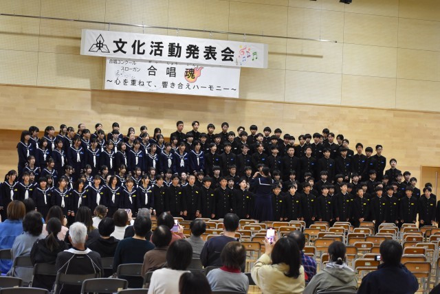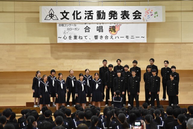 合唱コンクールスローガン『合唱魂 ~心を重ねて、響き合えハーモニー~』のもと、どのクラスも精いっぱい合唱に取り組み、成果を披露しました。