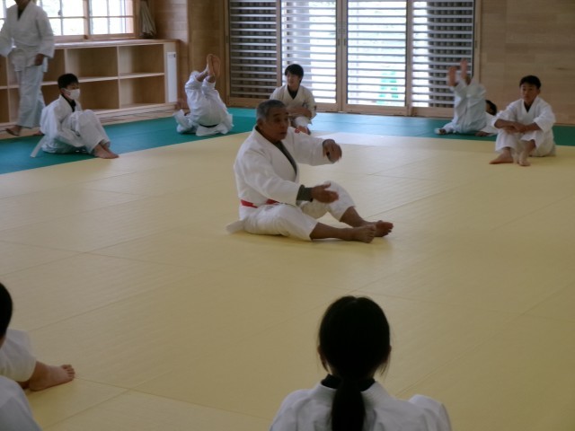 昨年度に引き続き、富山市柔道連盟の北見先生が特別講師としてご指導くださり、安全に楽しく授業をしています。
