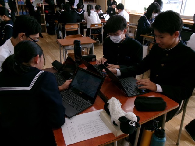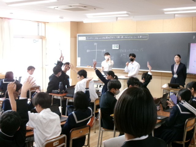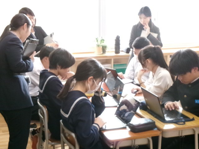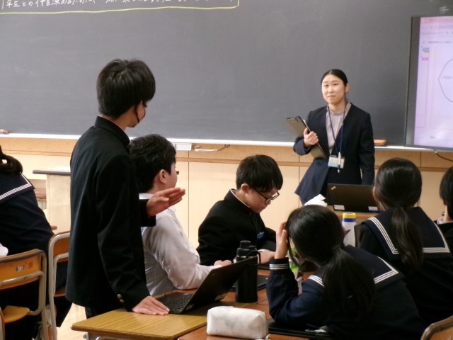 なお、今日の2年2組の授業は、3年次研修会の一環で他校の先生方にも公開しました。