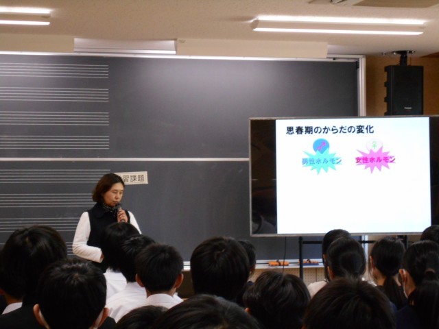 思春期の心と体の変化、人それぞれの性、妊娠や性感染症など性に関するトラブルから身を守るための方法などに関してお話があり、生徒たちは自分たちの今後のことを考えながら真剣にお話を聞いていました。