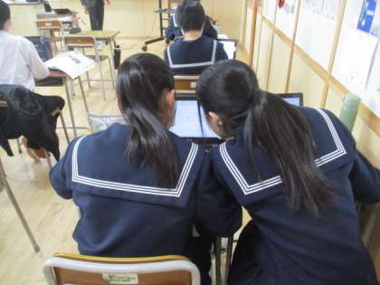 一人で黙々と調べるもよし、情報交換しながら進めるもよし。自ら選択して活動に取り組みます。 -