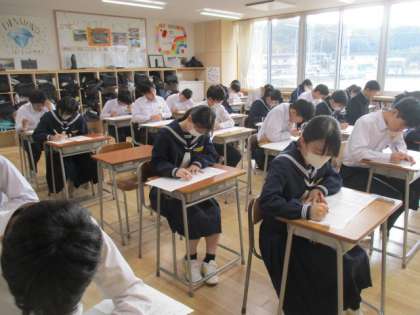 最後のひと頑張り、生徒は最後まであきらめずに答案に向かいます。 -
