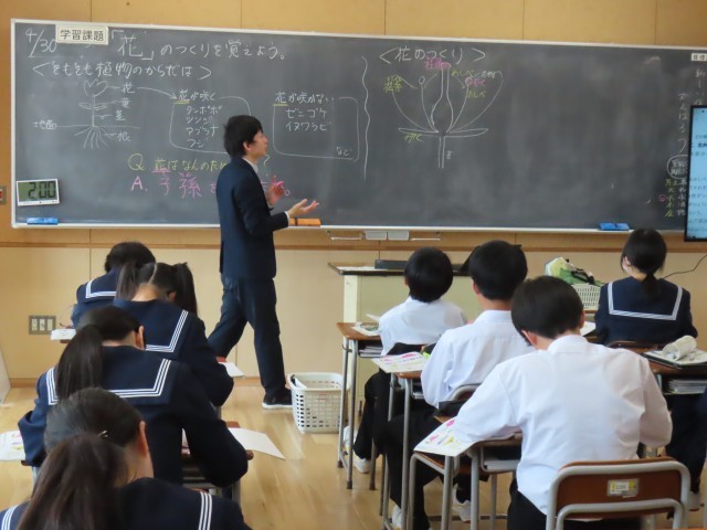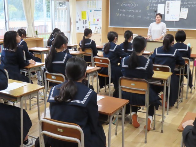 (写真上)1組数学「展開の公式について」・・・「できた人は、ちょっと周りの人に聞いてみよう」(写真下)2組保体「集団行動」・・・「イッチ、ニー!イッチ、ニー!」