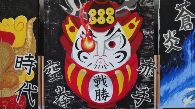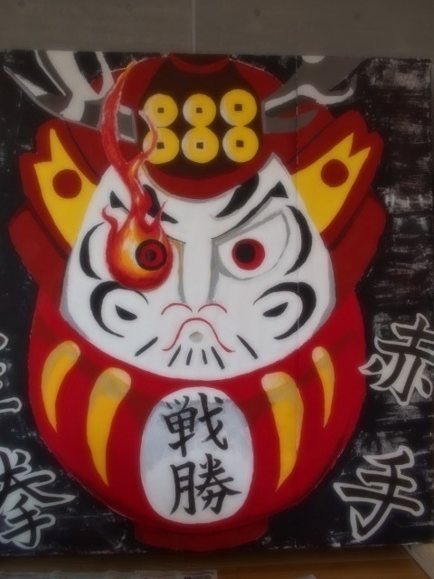 赤団 デコレーション係の3年生でだるまに目を入れました。