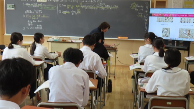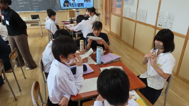 (写真上)1組英語「『~ということを伝える』のような表現を学ぼう」