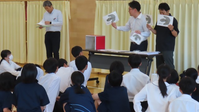 6月7日(土)に開催される「大山ダイナソー祭り」のボランティア生徒の打合せがありました。説明しているのは、南商工会のスタッフです。