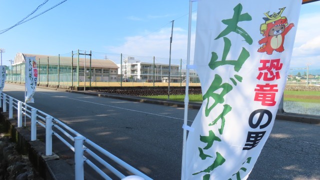 学校近くの通りには、のぼりが並んでいます。