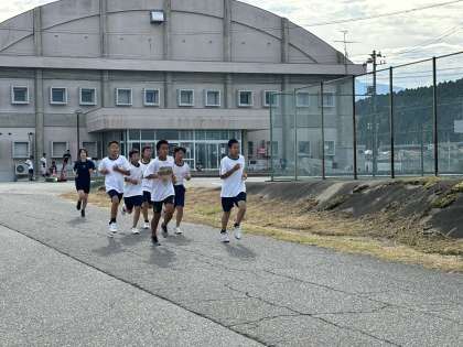 駅伝部は、10月5日県中学校駅伝競走大会の会場となる県総合運動公園陸上競技場にて試走しています。距離とペース配分をイメージしながら走っています。