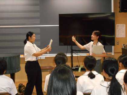 1学年は6時間目にSDGsレポートの発表会を行いました。1学期から調査したり班で話したりしてきた内容をドキュメントでまとめ、発表しました。発表も聞く姿勢も真剣で、質問もよかったです。後半は来週行います。