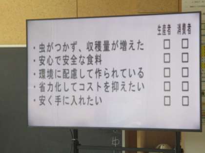 生産者と消費者、それぞれの視点をもって生物の生産や流通などについて考えています。 -