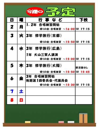 1、2年生は月曜日から合唱練習がスタートします。 -