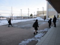 今朝の登校時は晴れになりました。今日は2年生の学年閉鎖や1年生の学級閉鎖のため、生徒が少ない登校風景になりました。本日の下校完了時間は15:55です。