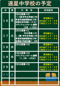 今日の1年生の3限目の授業の様子です。 久しぶりに全クラスが揃い、1年4組の生徒たちもうれしそうでした。 学年末考査まであと10日余りとなりました。 本日より部活動停止としたので、しっかりと自宅...