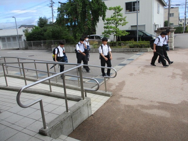 今朝の登校時は晴れになりました。本日の下校完了時間は16:30です。