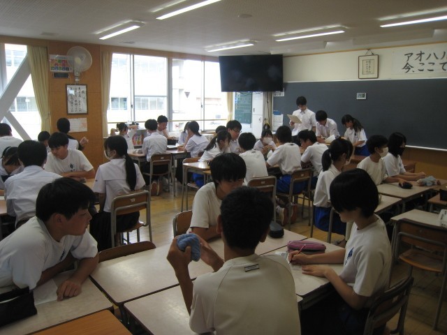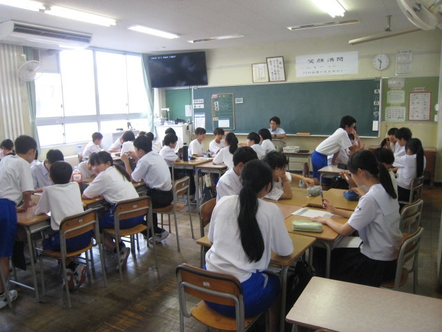 3限に、全校でスマートフォンの持ち込みに関する学級討議を行いました。