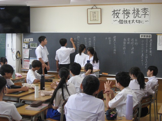「富山市立速星中学校 スマホ・ケータイの持ち込みのルール」と題して、各クラスで学級討議を行いました。