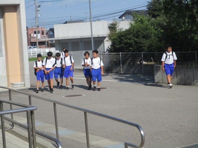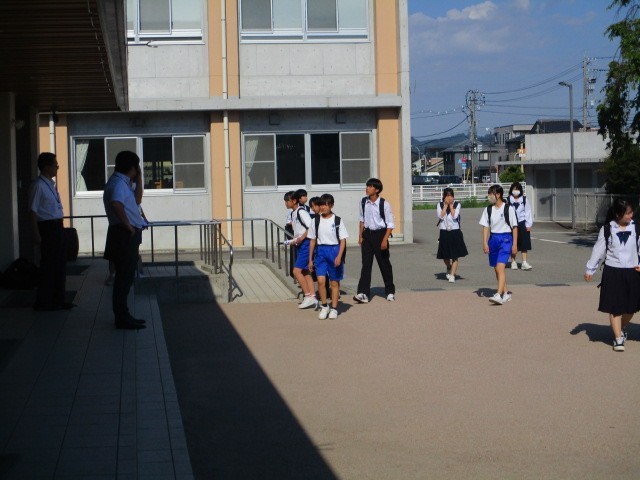 今朝の登校時は晴れになりました。朝からとても暑くなっています。本日の下校完了時間は15:25です。