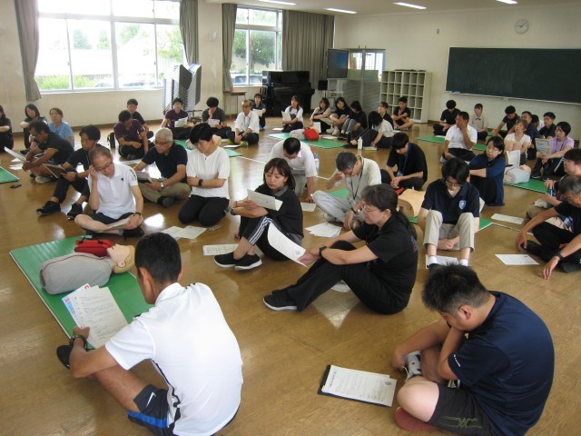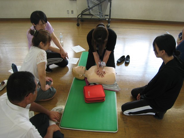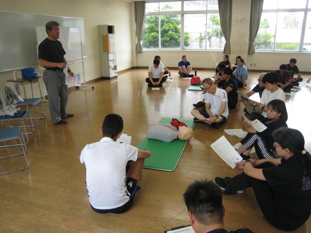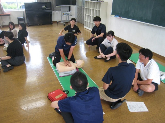午前中に、職員研修としてAED講習会を行いました。講師の先生方に教えていただきながら、全教職員が熱心に講習に臨みました。