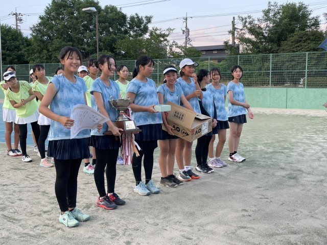 本日、標記大会が福井県で行われ、本校テニス部が出場しました。決勝では接戦を勝ち抜き、見事初優勝を果たしました。全国大会は8月17日から19日まで、福岡県で行われます。