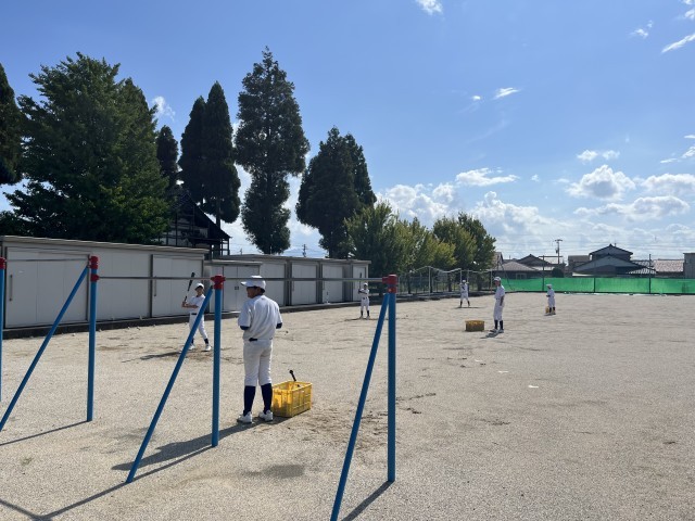 午前の大雨とは打って変わって午後は晴天。野球部が外で活動を始めました!