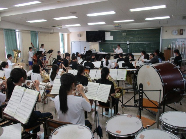 吹奏楽部の本日の練習の様子です。パート練習に続いて、全体練習に取り組みました。