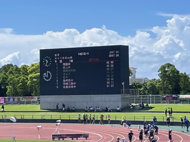 沖縄で開催された全中陸上競技 女子4×100mリレーの結果です。
