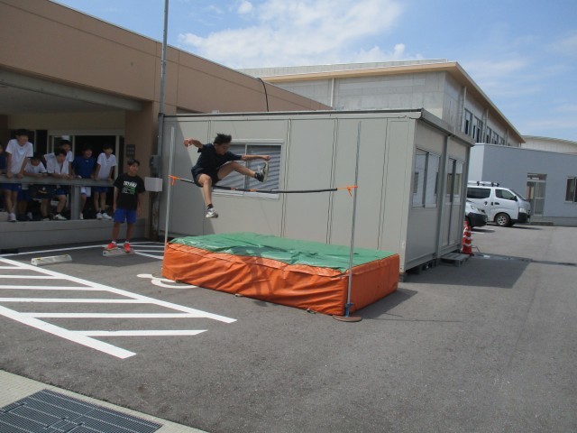 陸上競技部です。新人大会に向けて、種目別練習をしています。