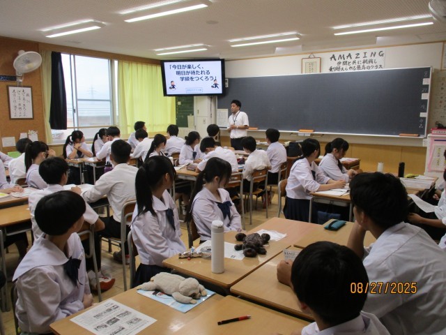 その後、夏休みの課題提出、2学期の目標記入、各種アンケートの回答などしました。