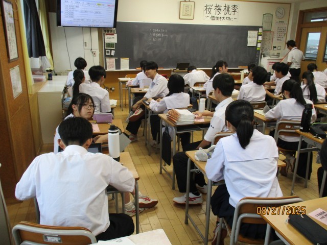体育館での始業式の後、教室に戻っての学活です。学校だよりに書かれている校長先生の言葉や、担任の先生の思いなど真剣に聞いていました。