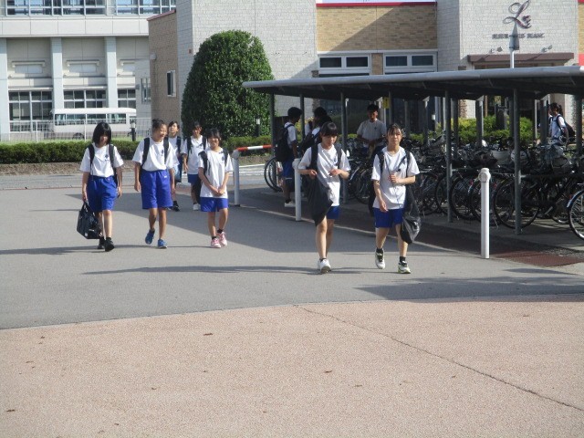 今朝の登校時は晴れになりました。今日から体育大会に向けて練習が始まります。本日の下校完了時間は16:30です。