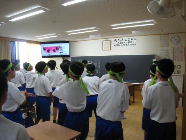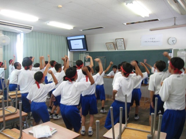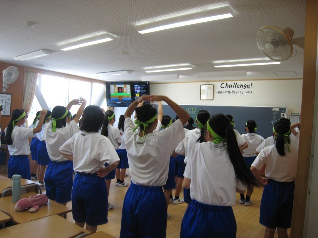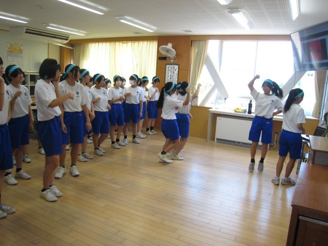 涼しい教室でモニターを見ながら振付を覚えるなど、工夫して活動しています。