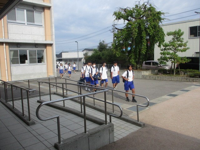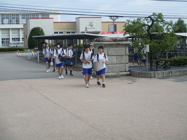 今朝の登校時は晴れになりました。本日の下校完了時間は16:00です。