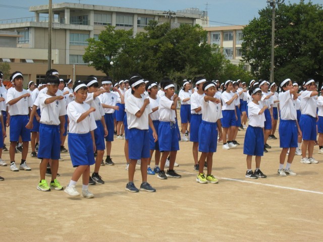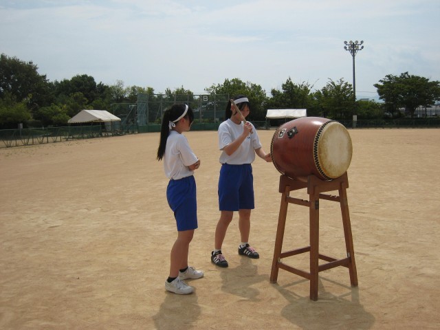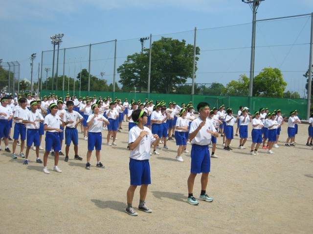 団活動2日目は、グラウンドを利用して、広々とした空間を使って練習しています。