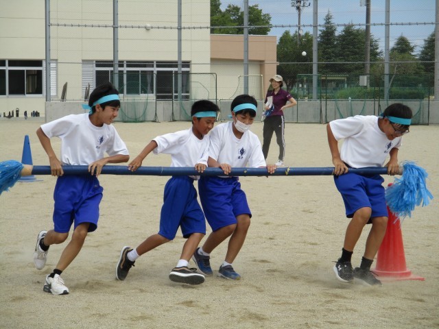 全体練習の後、グラウンドに出て学年練習を行いました。一通り競技を行い、見つかった改善点を話し合いました。明日の本番に向けて、どの団も声を掛け合って、一生懸命練習していました。最後に、プラザのグラウンドに移動し、入退場の位置の確認を行いました。