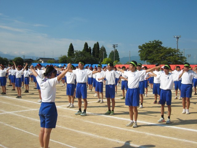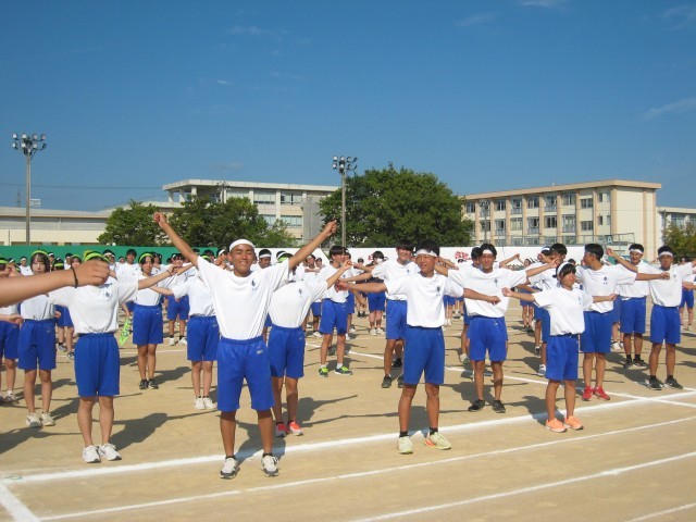 実行委員の指揮の元、準備体操です。けがのないように、しっかりと体を動かします。