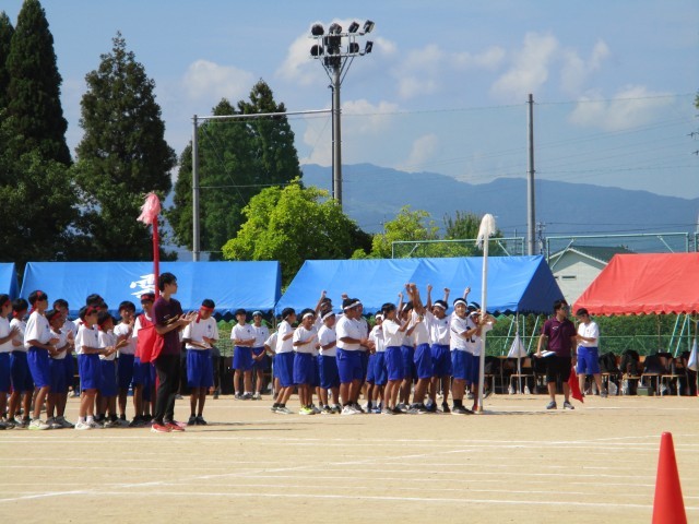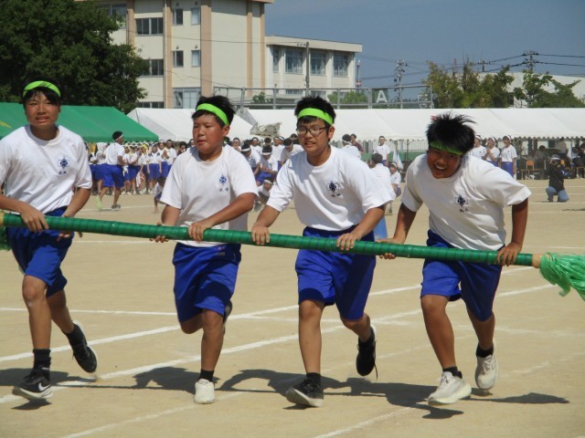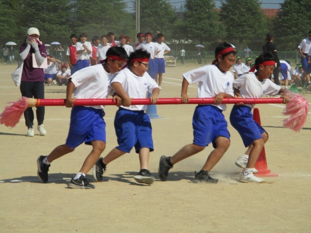 1年生の団体種目は、『速中ハリケーン』です。今まで練習を重ね、作戦を練り、今日の本番を迎えました。練習の成果が表れ、1位と2位は、僅差の時間差の熱戦となりました。