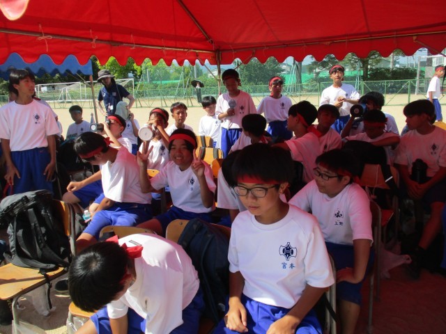 競技と競技の間は、各団の団テントの中でしっかりと水分を摂り、休憩をしています。