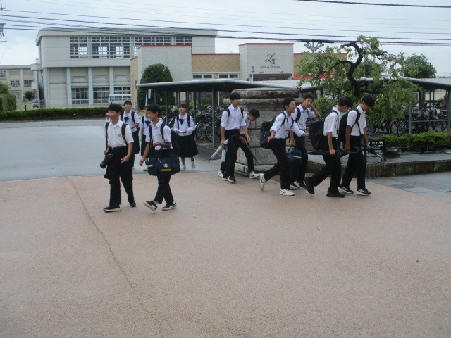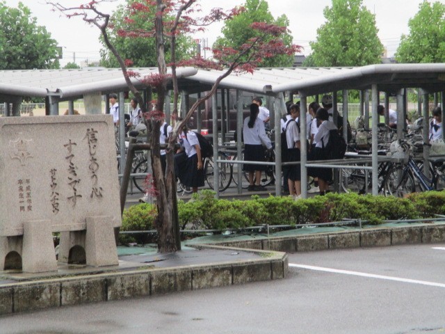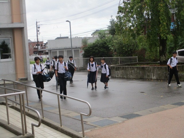 今朝の登校時は雨になりました。本日の下校完了時間は16:55です。