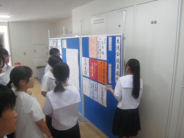 生徒会選挙に向けて選挙ポスターを放課後掲示しました。