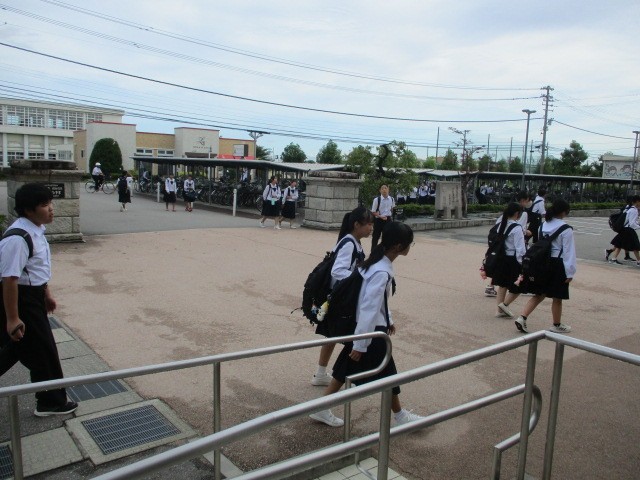 今朝の登校時は曇りになりました。今日は5、6限に後期生徒会役員選挙の立会演説会と投票を行います。本日の下校完了時間は16:25です。