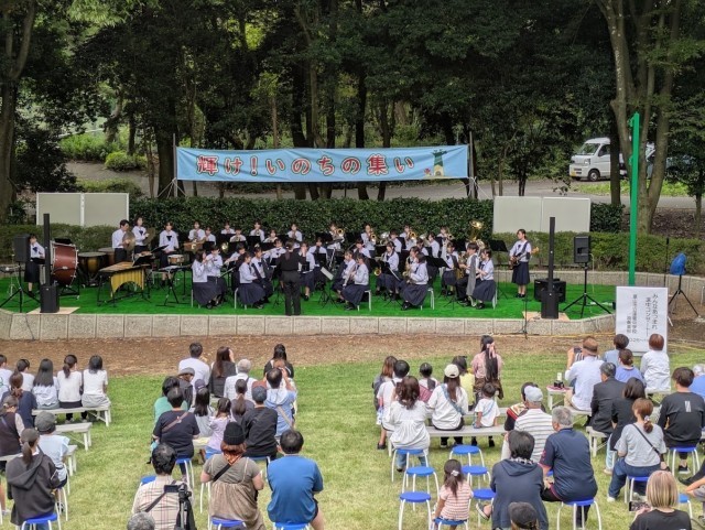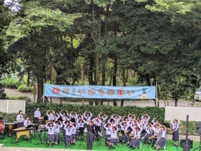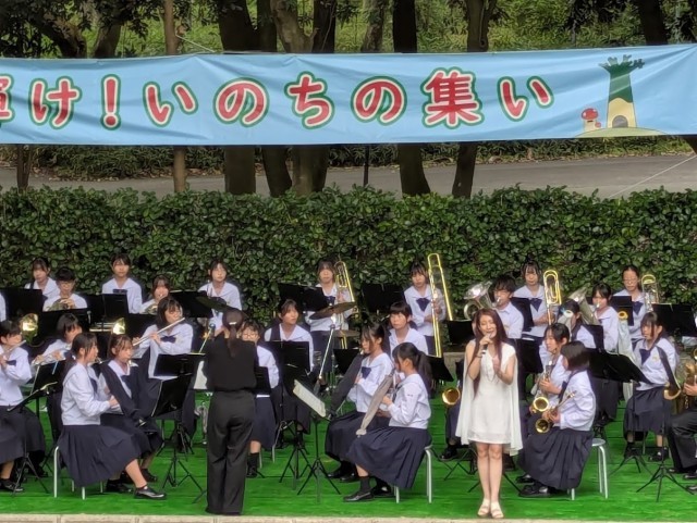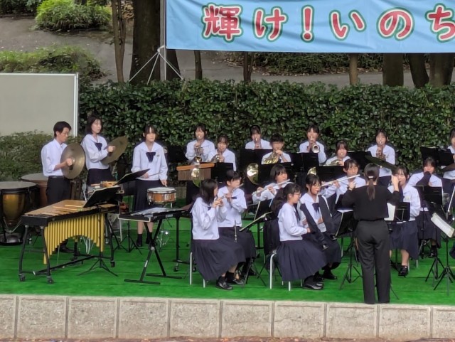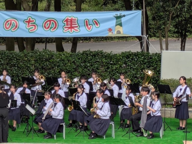 吹奏楽部は、午前にはファミリーパークで行われた「いのちの集い」、午後にはふれあい館で行われた「婦中音楽祭」に出演しました。いのちの集いでは、速中出身の歌手、内生蔵裕希さんとコラボレーションをさせていただきました。1、2年生の初ステージとなった今日ですが、多くの方に聴いていただき貴重な経験になりました。