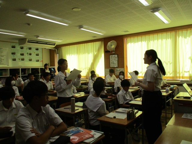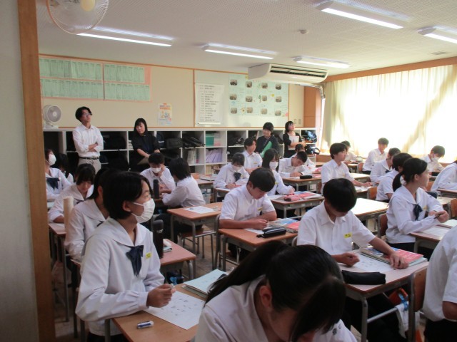 3限2年2組で、教育実習生による研究授業を行いました。動名詞を使って、自分や友達のすきなことについて伝え合いました。