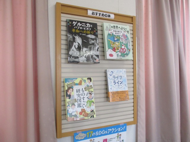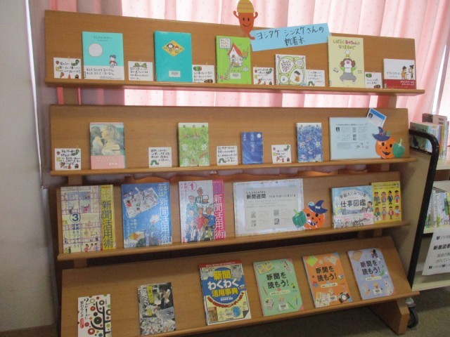 図書室のレイアウトが、秋らしくリニューアルしています。