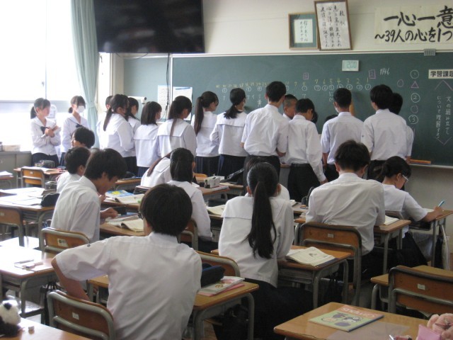 9月29日(月) 1年生 授業風景 公開日 2025/09/29 更新日 2025/09/29 1年生 本日の1年生の2限目の授業の様子です。 1年7組美術の授業では、明日が最終日となる教育実習生が机間巡視を行い、生徒と触れ合う機会を多くもつように努めていました。 最終日の明日も頑張ってください。 写真は、上から1組社会、2組国語、3組英語、4組英語、5組音楽、6組数学、7組美術の授業の様子です。 +5