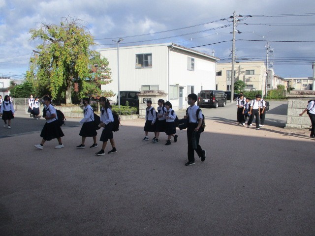 今朝の登校時は晴れになりました。本日の下校完了時間は15:35です。