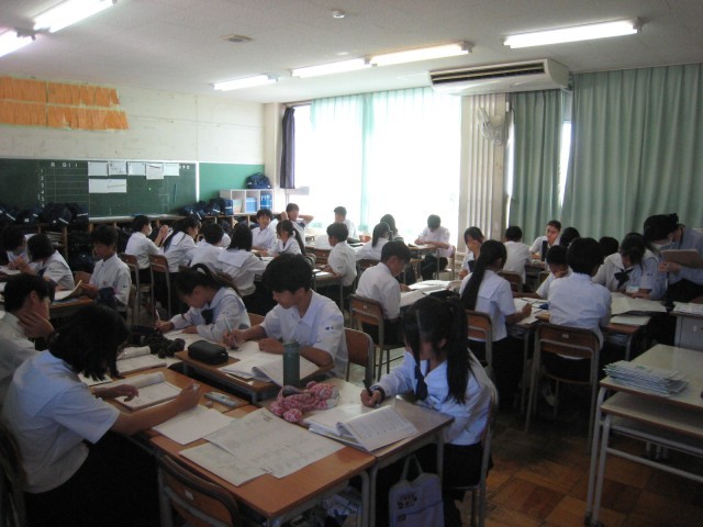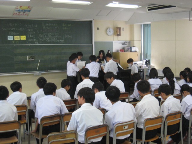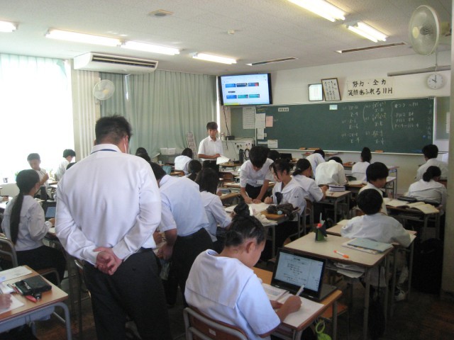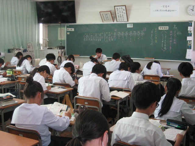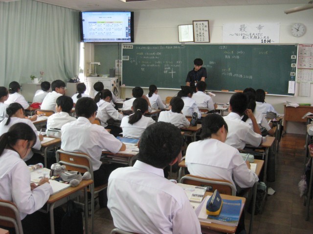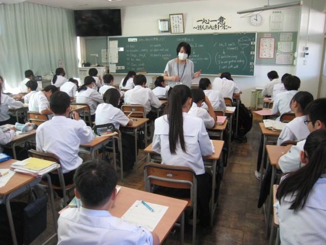 写真は、上から1組数学、2組英語、3組数学、4組国語、5組音楽、6組社会、7組保健体育の授業の様子です。