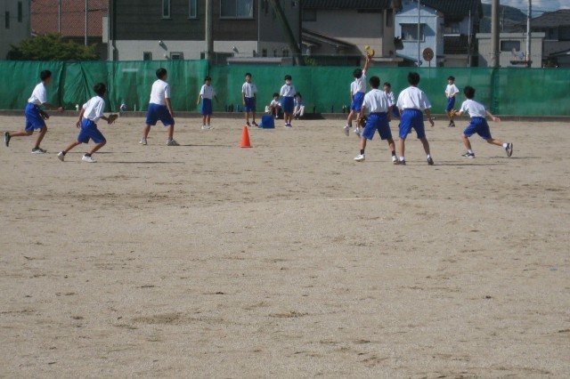 1年7組の保健体育はグラウンドでソフトボールを行いました