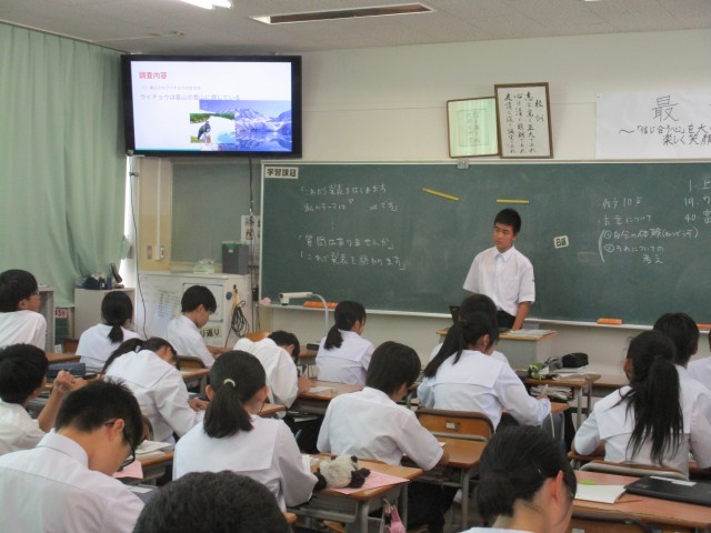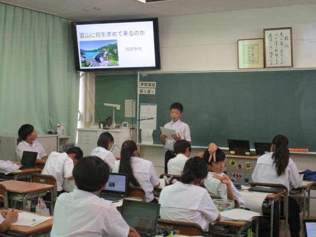 1年生では、「発見!富山の魅力!!」をテーマに、これまで調べてきたことの発表会をしました。